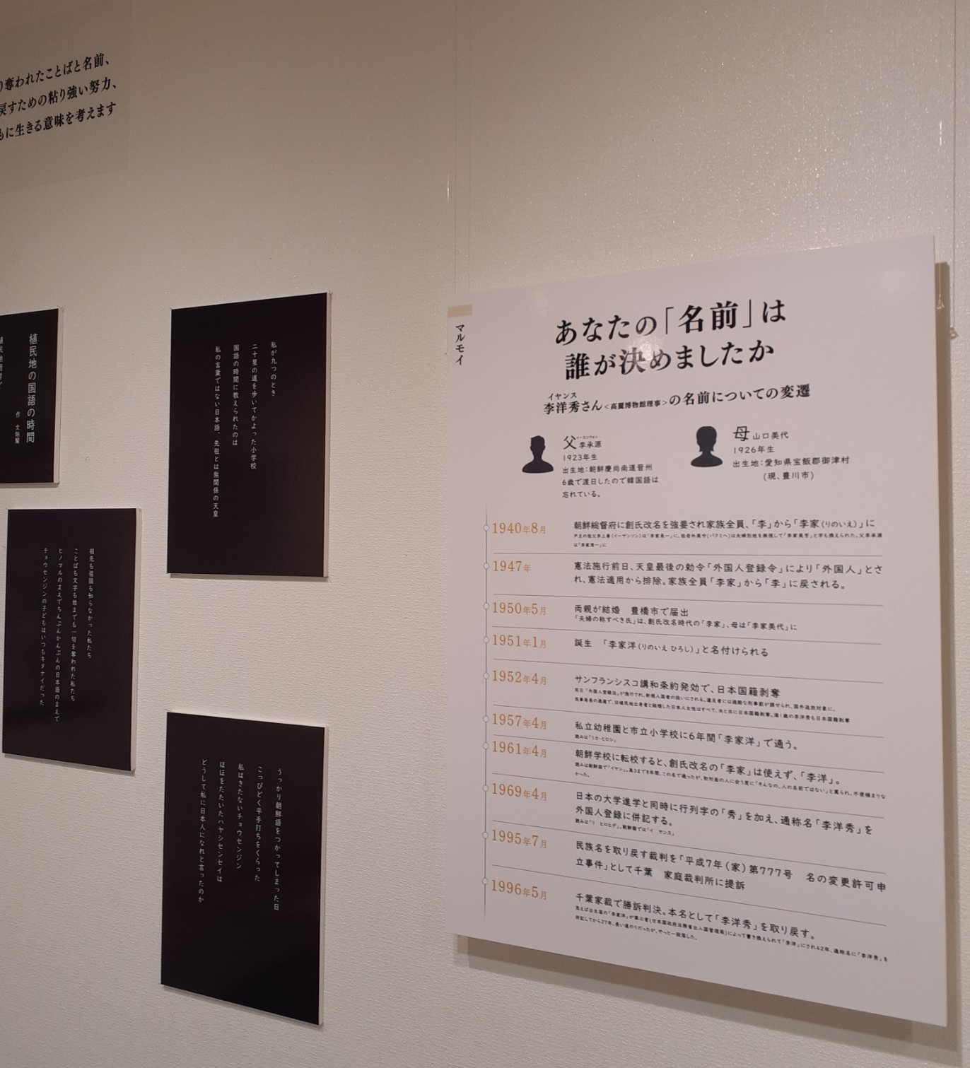 企画展第4回のギャラリートークは、「マルモイチーム」の第2回目。チームのパネル「創氏改名」で紹介している李洋秀さんのライフヒストリーについて、ご本人にお話いただきます。